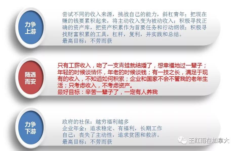 无论是力争上游,还是力争下游,其实追求的目标都一样:不劳而获。加拿大政府能给予的社保金,需要达到一定年龄才可以领取,如果想领到政府养老金的最大值,也不是一件容易的事儿:每月其他收入低于26元才能拿到最高额的社保金,即,每年每人不到1.5万元。长期保持赤贫状态,我是做不到啊,咱们还是讨论怎么力争上游吧。对于力争上游的人来说,退休后要想不劳而获,需要被动收入能够维持体面的生活,直到离开这个世界。年轻时的劳动收入被政府收走43%,维持基本生存需要支付36%,只剩下21%的收入在交通、教育、医疗、保健、投资等项目中分配。一个人如果能把全部收入的10%用于投资,已经很了不起了,这样的投资,到退休后能产生足够的被动收入吗?这个扎心的问题只有一个解儿:税不能白交,凭税单向银行借款,买投资房,累积个人资产。