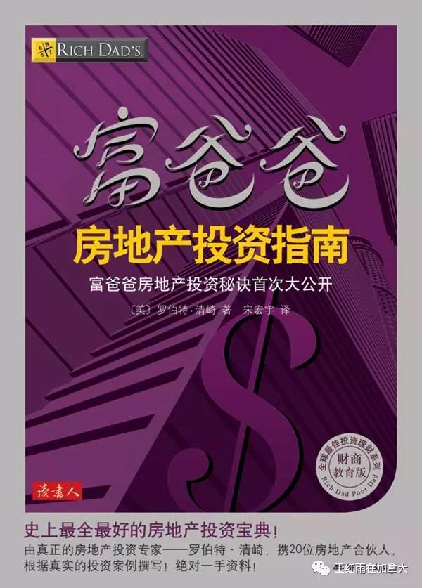 民用住宅投资,是小学课程;商业物业或多套房物业投资是中学课程,先做好民用房产投资,再尝试商业地产投资,会更稳健。在加拿大,每个人最多可以申请到10套民用投资房的按揭贷款,夫妻两个人,最多20套,即使不上房地产投资的中学课程,能够小学毕业也足够一生富足了。可惜偏偏有人来到加拿大,就先去中学参加考试,得个不及格很正常。买了墓地,冰淇淋店,度假屋,农场,酒庄,酒店,加油站,汽车旅馆,不仅没有收获反而深陷其中的,大有人在。基础不牢的商业地产投资者,与匆匆忙忙进行地产开发的华人差不多,仅凭着在中国成功的惯性,在加拿大碰不到好运气。“Copy “很容易,往哪“paste” 很重要,粘贴错了地方,自己痛苦。大多数中国人开始知道房地产是1998年的事儿,即使最早接触房地产的人,也就21年的经历,而加拿大的房地产有150年的历史了,很多在中国的做法,粘贴到加拿大就显得太稚嫩了。不要怪拿佣金的“专业人士”骗了你,因为他们也没啥经验,分辨不出好坏。在加拿大住的久一点,才能找到货真价实的专业人士。另外,给大家推荐一本书,富爸爸系列书中的《房地产投资指南》,里面详细介绍了北美房地产投资的经验和教训,法律基础以及税务政策,特别是商业地产投资,介绍得格外详细。这本书没有通读两遍以上,最好不要投资加拿大的商业地产。这本书大陆华人看了也没用,完全不同的产权和交易以及税收制度,这本书的中文版,只适用于加拿大和美国的华人读。