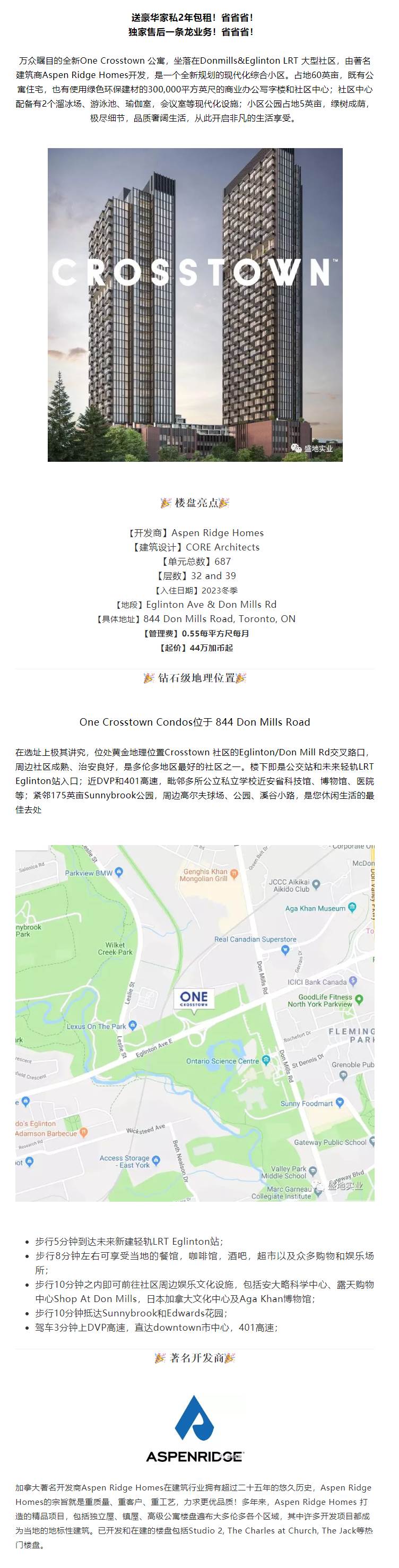 【盛地VIP代理】One Crosstown Condos Midtown新盘火爆发售,不容错过!