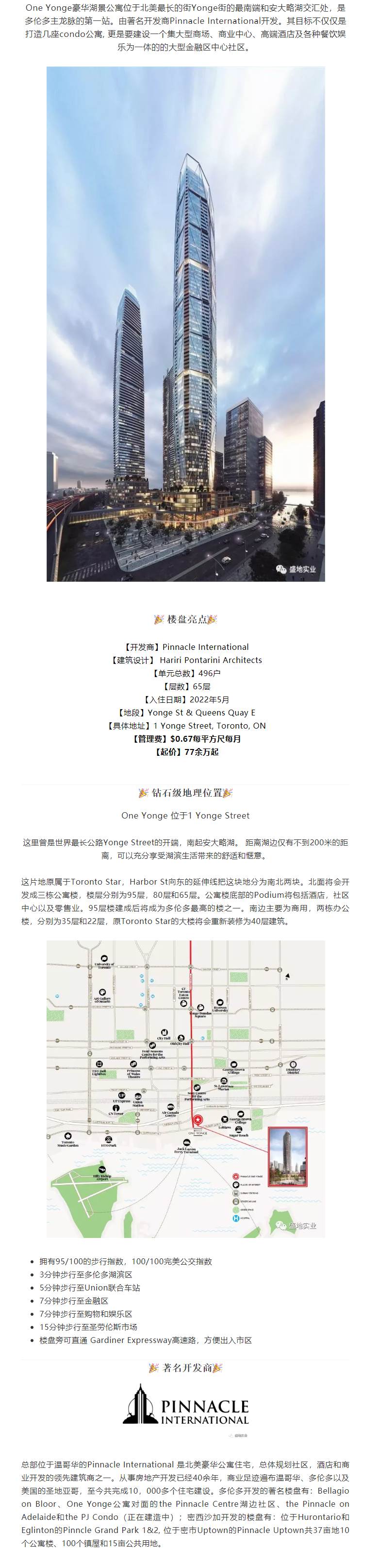 【盛地VIP代理】保留单位ONE YONGE 央街一号公馆,多伦多龙脉第一站!不可多得的湖滨豪华地标!