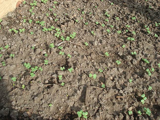 3. 大家可别不待见,里面的新“住户”,已经安家了。 西头(左)是刚刚破土而出的小青菜,东端是移栽的12坨扎堆在一起的韭菜。还有,就是中间仍然猫在地下看不见的小葱和香菜了,估计正在努力可着劲地住上拱呢。