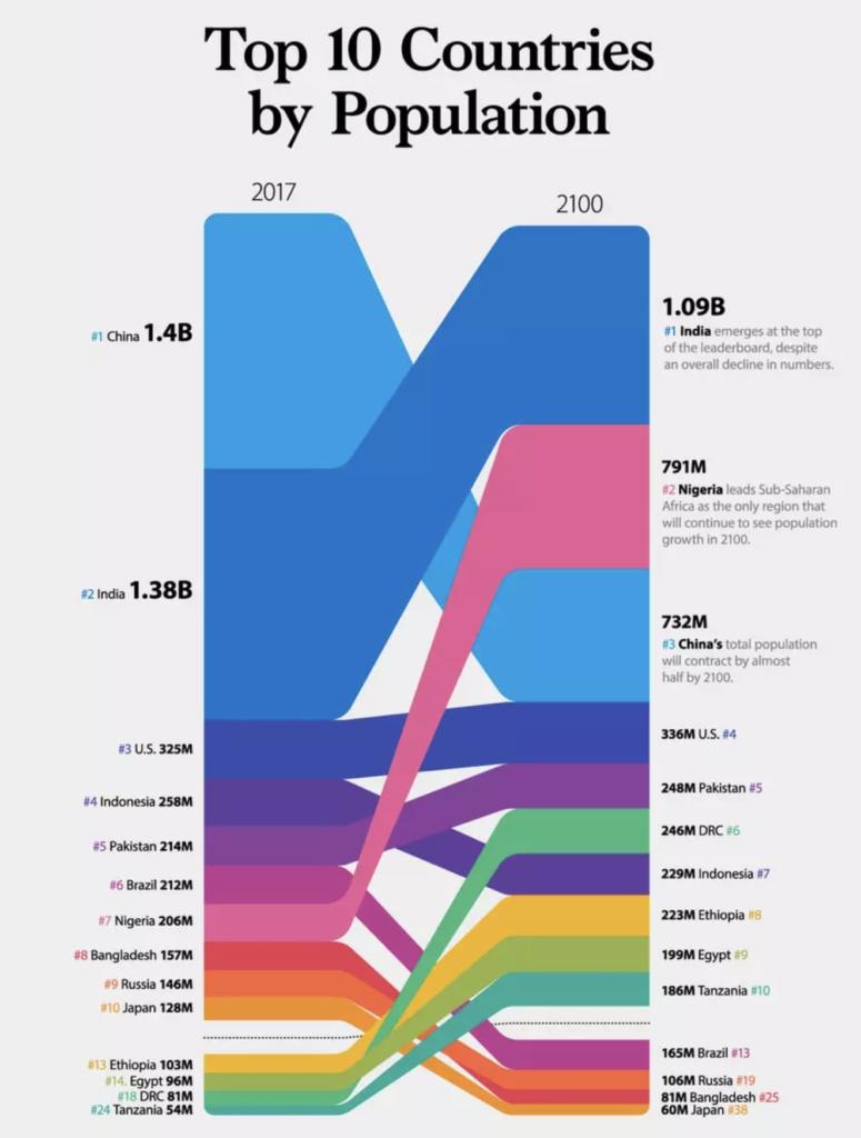 按照目前的移民政策和人口统计数据,加拿大在 2100 年将拥有约 5000 万人口。