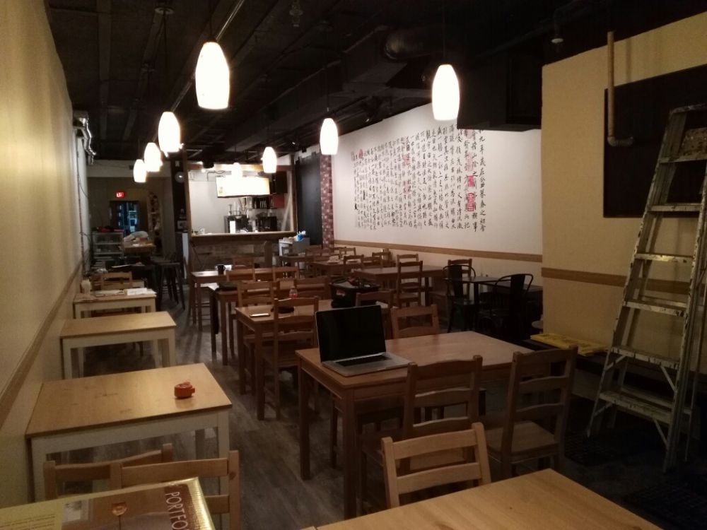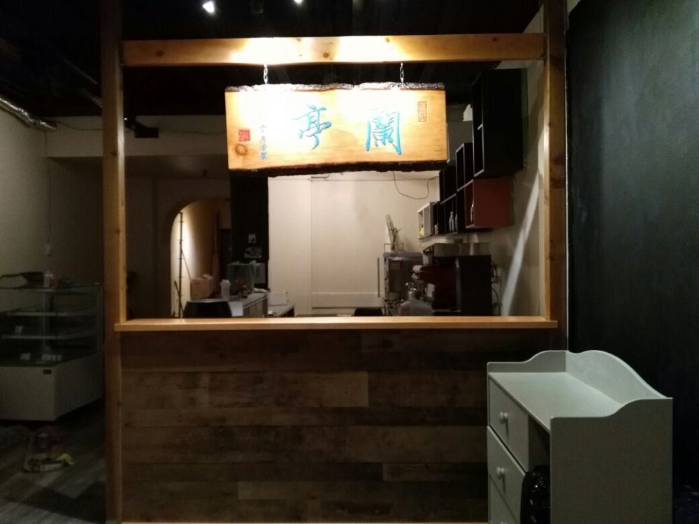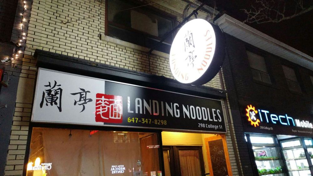 装饰搞得这么高雅,似乎不食人间烟火,其实只不过是一家餐馆,主打卖面。店的名字是“Landing Noodles”,意为移民登陆者,皆来吃面,谐音就成了“兰亭”。这透出店主的文化底蕴来,不愧是作家。他移民后洁身自立,准备以商养文,在多伦多市中心的唐人街与大学附近开起了这个店。其店外的招牌也是我帮助设计的。