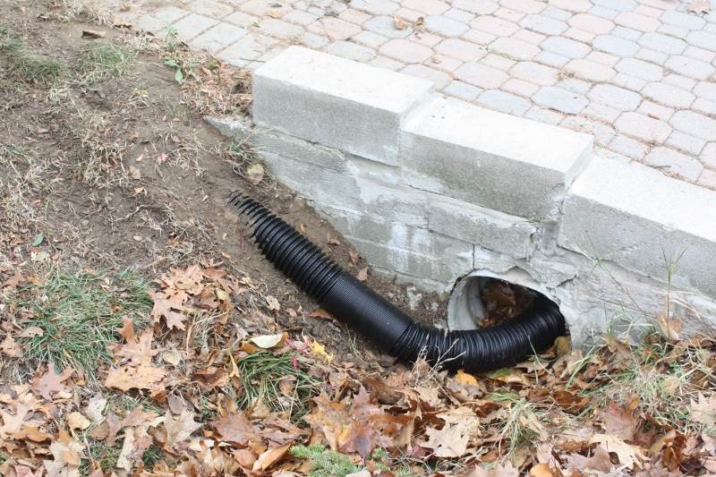 有了这一冬的体验后,2014年秋天,我进行了第二次改造。办法是截短纵向管道,延长斜向横管,使其达到车库墙角处接近地面。再在其外面接上12英尺长的塑胶软管,向外拖到车路边的地面上。此为二变。