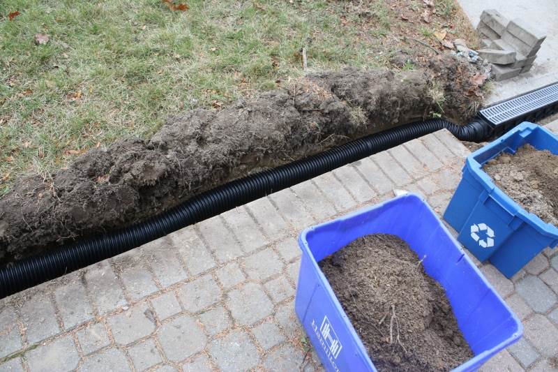 两次失败,逼得我再做进一步改进。2015年,在Home Depot我看见了一种新产品,是新技术使我的老大难问题得以彻底解决。这是一种澳大利亚生产的室外排水系统,便于自己安装。买来了两截带格栅的下水槽,和长达52英尺的软管道,共100多元。