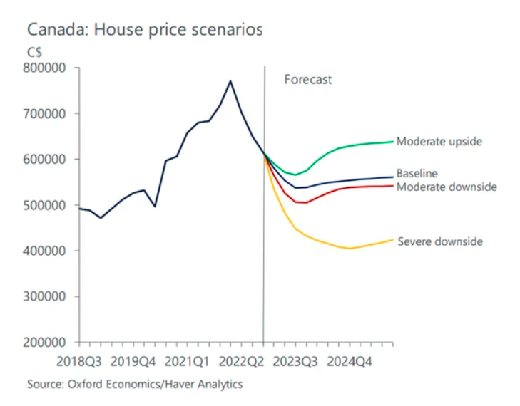 Oxford 表示,如果全球供应链的修复速度快于预期,从而缓解通胀并提振投资者信心,那么房价从峰值到谷底的跌幅可能仅为27%。